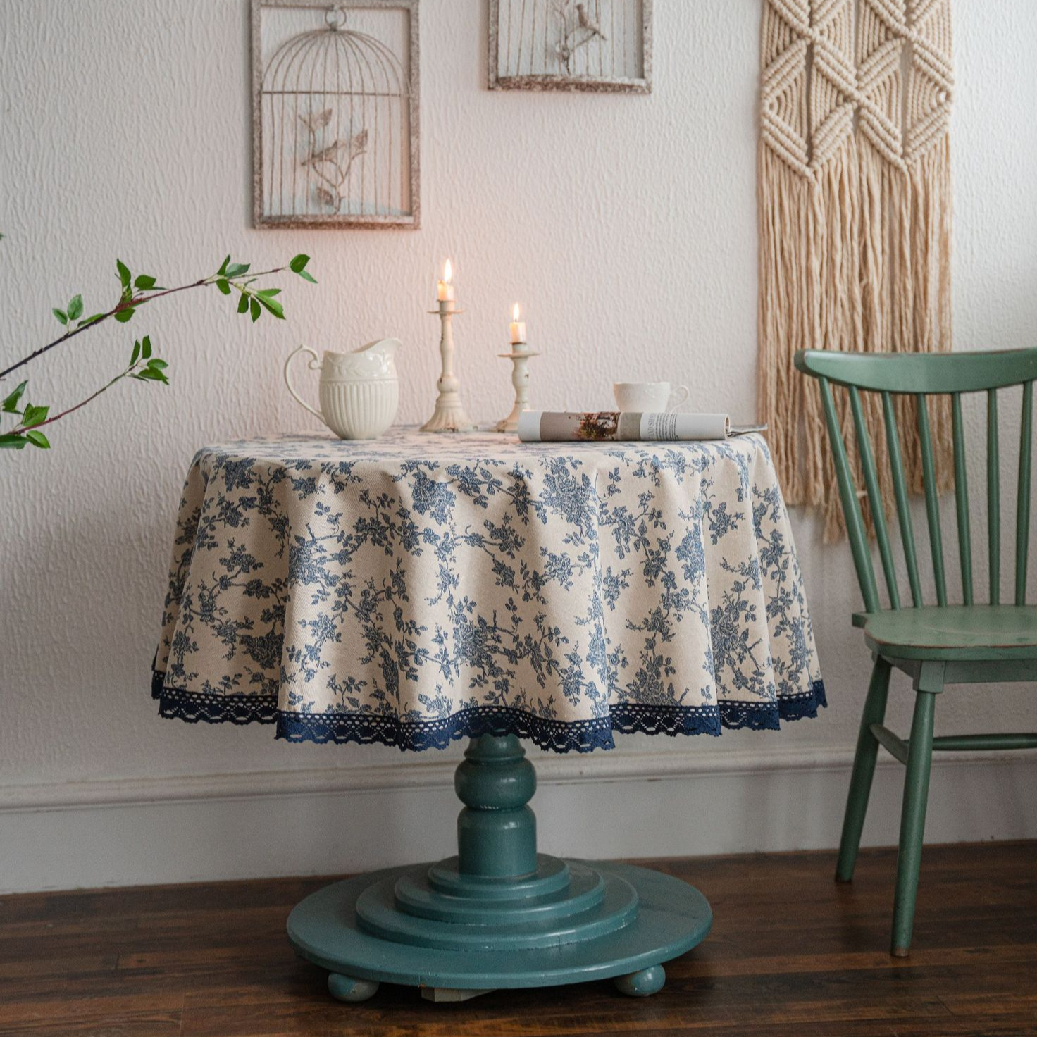 藍玫瑰印花桌布